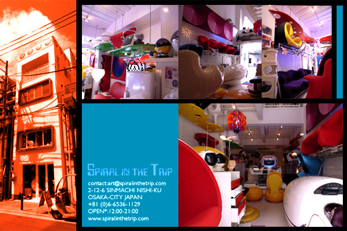 SPIRAL IN THE TRIP スパイラルインザトリップ 代表:NobuMiyagawa ADDRESS:大阪市西区新町2丁目12-6 TEL&FAX:06-6536-1129 WEB:http://www.spiralinthetrip.com MAIL:art@spiralinthetrip.com 営業時間:13:00〜20:00 ※デリバリーその他で留守にすることがございます。事前アポイントメントをお勧めします。 最寄駅:地下鉄 西大橋駅 徒歩3分 地下鉄 四ツ橋駅 徒歩10分 地下鉄 心斎橋駅 徒歩15分 事業内容:インテリア製品の企画販売 ショップ&ハウスインサイドプロデュ―ス プレゼンテーションワーク お探しの商品など御座いましたら お気軽にmail又はお電話にてお問い合わせ下さい。 写真以外にも店頭に多数取り揃えております。 |